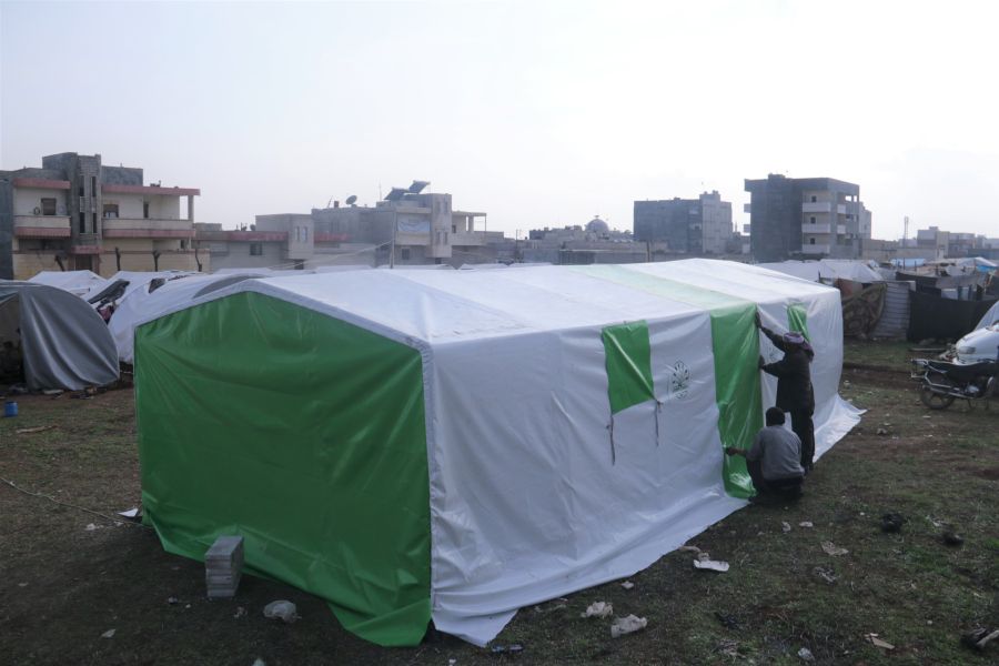 Nachdem wir mit Allahs Hilfe und dann euren großzügigen Spenden 25 Großzelte errichten konnten, haben wir jetzt ein Gebetszelt errichtet.