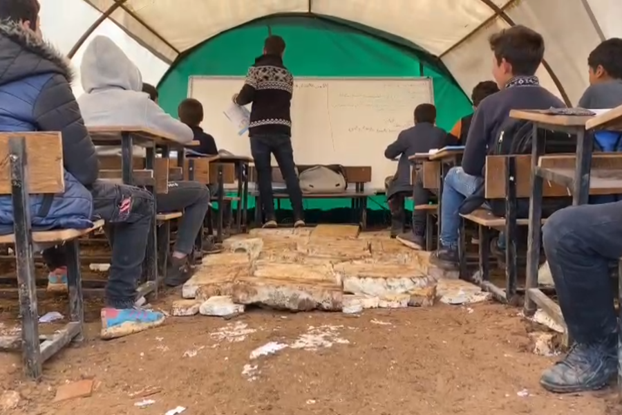 wie ihr euch sicher denken könnt, sind auch viele Schulen in Nordsyrien durch das starke Erdbeben zerstört oder beschädigt worden. In den einsturzgefährdeten Gebäuden kann der Unterricht nicht mehr stattfinden. Deshalb werden die SchülerInnen aktuell noch in Zelten unterrichtet.