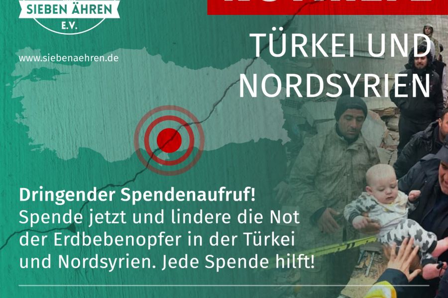 Nothilfe - Starkes Erdbeben in Türkei und Nordsyrien