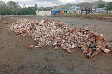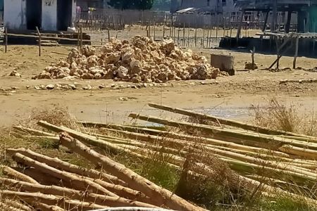 - Erste Baumaterialien (Sand, Steine) wurden für das Fundament gesammelt